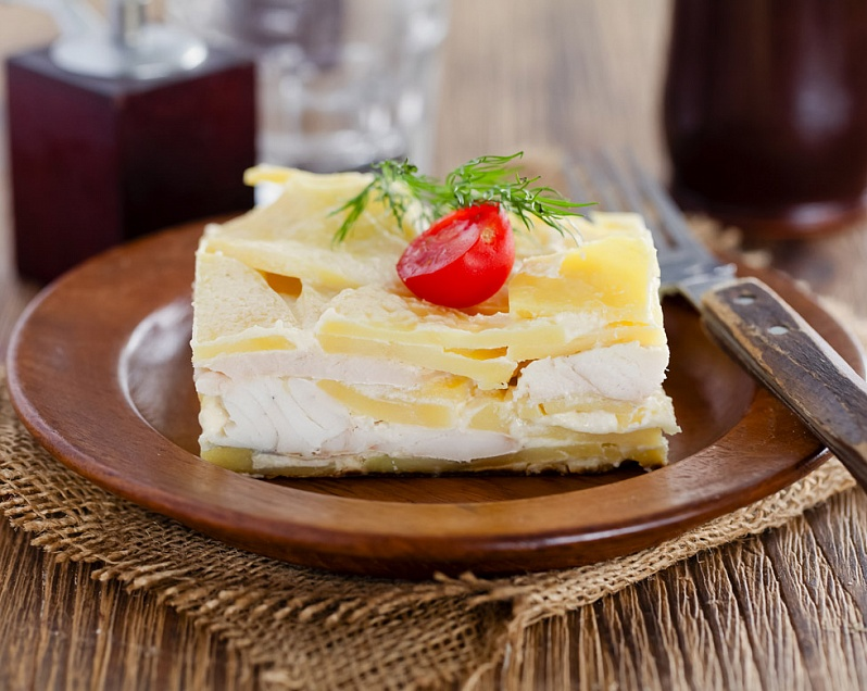 Порции: 6 ПРИГОТОВЛЕНИЕ Шаг 1 Подготовить мультиварку и ингредиенты. Шаг 2 Картофель очистить и нарезать тонкими кружками. Рыбу вымыть, обсушить и нарезать небольшими кусочками. Шаг 3 Включить режим «Мой рецепт plus (мультиповар)», установить температуру 160 °С, в чаше разогреть молоко, добавить нарезанное кусочками масло и довести до кипения. Перелить в миску, дать немного остыть и добавить сметану. Хорошо перемешать. Шаг 4 Выложить в чашу мультиварки слой рыбы, затем слой картофеля. Потом снова слой рыбы, лавровый лист и оставшийся картофель. Каждый слой слегка посолить и поперчить. Шаг 5 Залить рыбу с картофелем сметанной смесью, готовить при температуре 140 °С 40 мин. Шаг 6