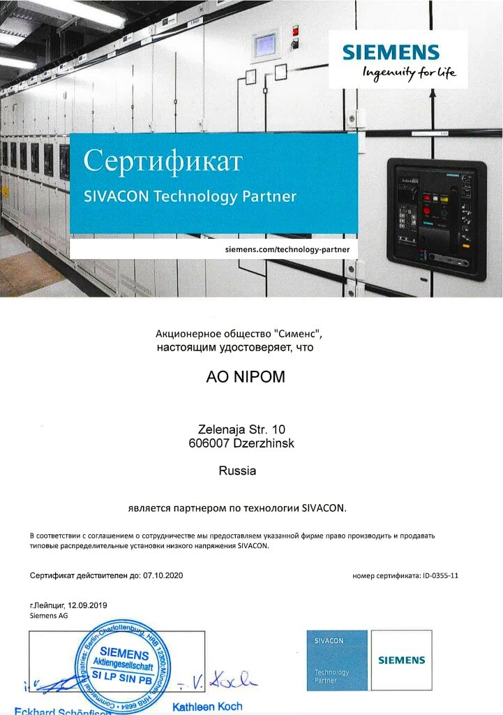 10 ЛЕТ УСПЕШНОГО ПАРТНЕРСТВА «НИПОМ» И SIEMENS ПО ТЕХНОЛОГИИ SIVACON