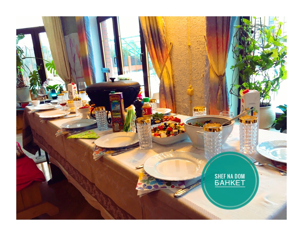 У нас часто часто заказывают выездной барбекю кейтеринг. На данном мероприятии заказчик готовил основной стол своими силами, а нас попросил полностью взять на себя барбекю зону. Мы привезли с собой все необходимое оборудование (казан с печкой 2 шт, вок и мангал) и приготовили следующие блюда: - плов из баранины - тяхан с курицей и овощами - аджапсандали - шашлык из свинины - каре ягнёнка с чесноком и розмарином - стейки из красной рыбы в апельсиново-медовом маринаде - овощи гриль по секретному рецепту Мы готовы приготовить эти вкусные блюда и многое другое на вашем мероприятии. Звоните нам: Наш сайт: http://shefnadom.ru Телефон: 8 (985) 986-33-01 Почта: shefnadom@yandex.ru