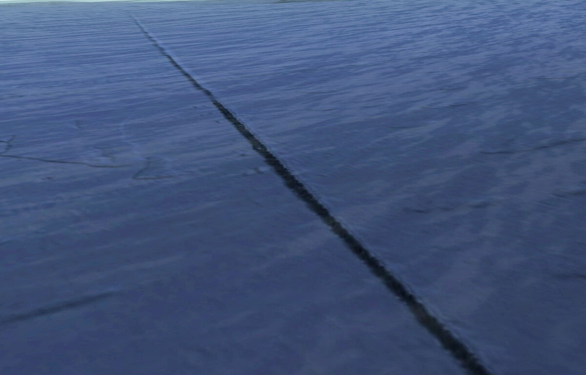 Поэтому статья выйдет насыщенной и интересной. Расположена данная находка возле побережья Калифорнии. Чем она является на самом деле, сказать сложно. На карте выглядит как огромная прямая линия, напоминающая некое образование или дорогу. Ее протяженность по прямому участку составляет около 6.8 километров. В противоположной от берега стороне объект разделяется на развилку. Длина линий развилки равняется примерно 1.2 километрам. Если залезть в спутниковых картах под воду, то там объект напоминает систему природных гор. Однако при просмотре реальной фотографии станет ясно, что спутниковые карты показывают в искаженном виде. Да и какие могут быть горы высотой в 8-10 метров? З Забыл упомянуть, что "дорога" находится на глубине 40-60 метров. Переходим к самому