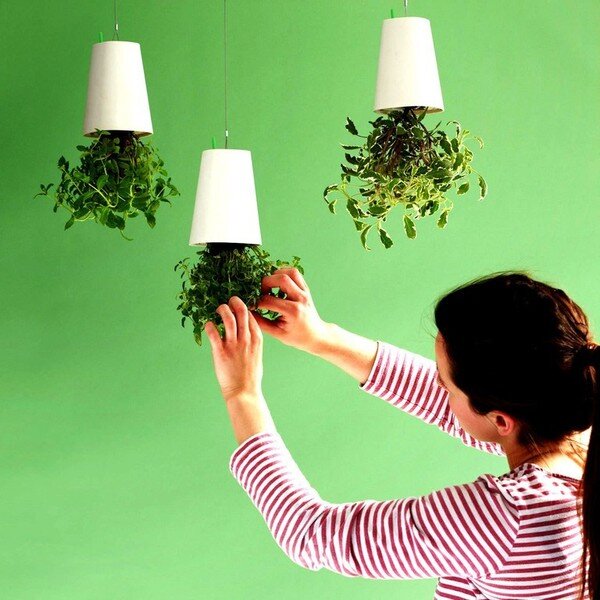Если вам тоже надоели скучные кашпо с растениями, эти идеи для вас. Модный фитодизайн перевернет ваши представления о домашнем оазисе с ног на голову! Признаюсь честно, я не фанат комнатных растений. Всевозможные горшки, кашпо и уж тем более сложные композиции из них совсем не вписываются в мой минималистичный интерьер. И вообще, есть в этих традиционных горшочках что-то от бабушкиного уюта, который мне пока чужд. Но случилось невероятное! Я решила-таки обзавестись «зелеными питомцами», не дожидаясь собственной пенсии. Спасибо фитодизайнерам, идеи которых меня покорили. Спешу поделиться ими с вами! Кашпо-перевертыш Дизайнер из Новой Зеландии Патрик Моррис (Patrick Morris) придумал удивительную систему подвесных кашпо Sky Planter. Как вы видите, горшки подвешиваются вверх дном, на котором закреплен крючок и трос. Но этим необычность этой конструкции не исчерпывается. В каждом горшке есть защитная крышка-сетка, чтобы содержимое не просыпалось, и резервуар для воды, чтобы почва увлажнялас