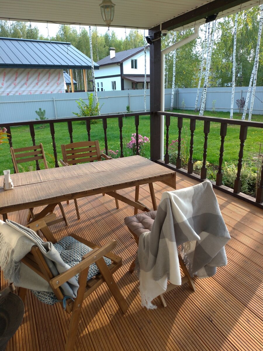Каждый кто покупает мебель в квартиру никогда особо не задумывается об условиях эксплуатации, да и о чем тут думать - поставил и что с ней случится, максимум исцарапается. Другое дело улица: резкие температурные колебания, лучи солнца и повышенная влажность - довольно экстремальные условия для любой мебели. У нас задача что то подобрать на открытую террасу (стол и стулья), и очень желательно чтобы быстро не развалилось. Пересмотрели много вариантов, говорят лиственница не боится влаги, но такую мебель так и не нашли. Пошли в проверенное место - ИКЕА :) , подвернулся любопытный вариант из акации, позиционировалась как мебель для дачи. Лето прошло без проблем, в дождь и ветер стол сильно заливало водой, в жаркие дни пивом и газировкой, в общем обычные трудовые будни :) Желающих одновременно находится на улице было так много что пришлось из дома вынести еще одно кресло от ИКЕА, на этот раз не предназначенное для улицы. Буквально чрез пару недель выяснилось что это было ошибкой, черная тка