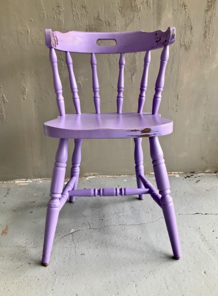 Это фиолетовый стул, который был расписан в нашей мастерской. Само по себе это очень круто. Но этот цвет, этот сочный фиолетовый ... Нет, это был определенно не лучший выбор. Хозяйка с самого начала знала, что она не хочет идти легким путем и просто перекрашивать его в что то более мягкое или более современное. ОЧИСТКА