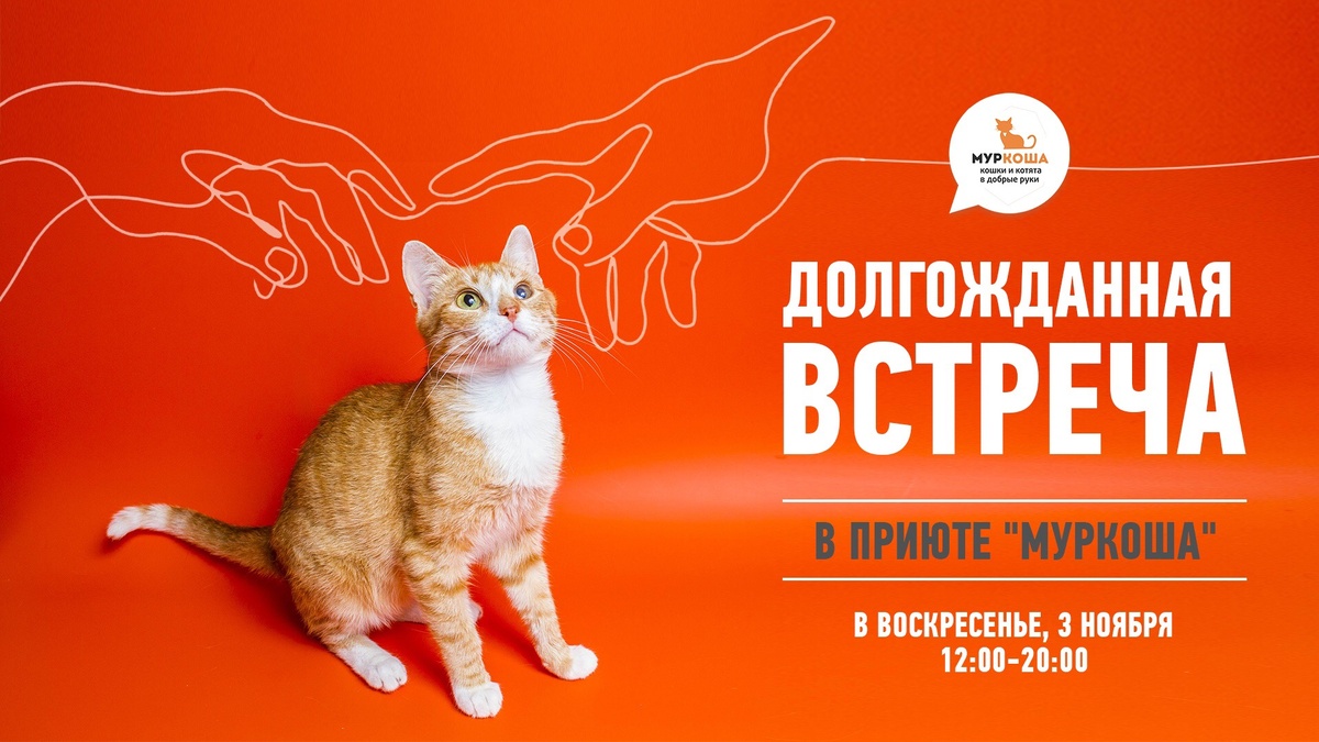 1. Домой в прямом эфире! 😻🎥 Смотрим трогательные проводы домой черно-белого трио в режиме онлайн! 🤗 Путешествуйте по приюту, не выходя из дома, вступайте в группу прямых трансляций, подписывайтесь на наш «Youtube», делайте репосты, приглашайте друзей! 👫 2. Приходите в гости! 😻🤚🏼 В воскресенье, 3 ноября, котики приюта «Муркоша» ждут вас на выставке «Долгожданная встреча»! 🤗 Каждый из малышей надеется на Встречу, которая будет решающей в его судьбе. Это ваш шанс подарить счастливое будущее живому невинному существу, которое будет любить вас до конца и никогда не предаст. За 5 лет существования приюта более 4500 котиков, у которых в прошлом не было ничего, обрели свое счастье благодаря таким людям, как вы. Жизнь этих животных и их хозяев стала наполненной смыслом и любовью. 💘 Все подопечные приюта «Муркоша» отдаются только ответственным людям, по результатам собеседования, понимающим, что кошка - это полноценный член семьи, а не игрушка. ✍🏼 3 ноября с 12:00 до 20:00 по адресу: