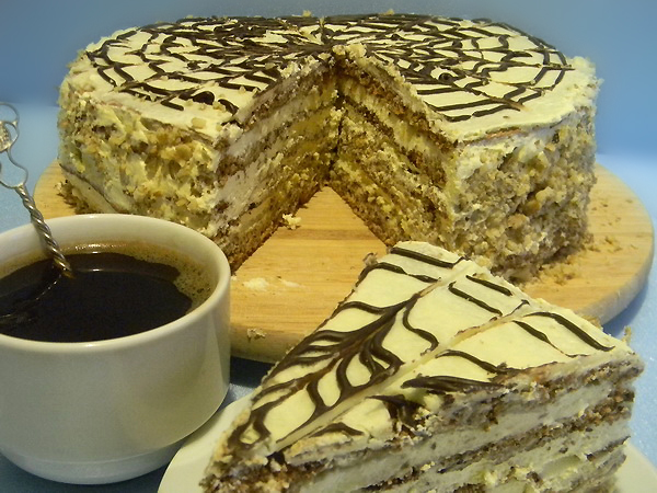 Рецепт этого вкуснейшего орехового торта держится под секретом. Но этом, наверное, даже хорошо, потому что позволяет экспериментировать, додумывать, опираясь только на свои собственные вкусовые ощущения, добиваться того, чтобы "было точно так же!" Я делаю этот торт не часто, потому что по времени достаточно трудоёмко, но результат, правда, этого стОит! Для пяти коржей диаметром 24 см. 8 яиц