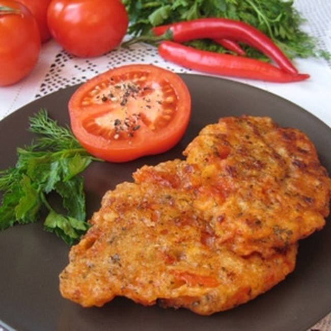 Любимое многих сочетание: помидоры, маслины и сыр фета. У меня есть замечательный рецепт помидорных котлеток, которые безумно вкусные. Готовится это блюдо не сложнее обычных котлет. Делюсь рецептом: На крупной терке потереть 6 помидор (у меня маленькие - сливка) К помидорам нарезать мелко маслины - штучек 10 Раскрошить не крупно сыр фета Добавить ко всем ингредиентам одно яйцо, 100 грамм муки, 1 чайная ложка разрыхлителя - без горки, базилик ( у меня сухой), соль и перец по вкусу. Хорошо размешать все составляющие рецепта и дать постоять 15 - 20 минут. После того как тесто настоялось его перемешивать не надо, так как котлеты не будут пышными. На сковородку налить немного масла и жарить обычным способом, с двух сторон. Помидорные котлетки на сковородке не растекаются, прекрасно сохраняют форму и не дымят. Аромат во время жарки потрясающий. Котлеты из помидор получаются очень вкусными и нежными. К такому блюду я подаю соус из сметаны с зеленью и чесноком.