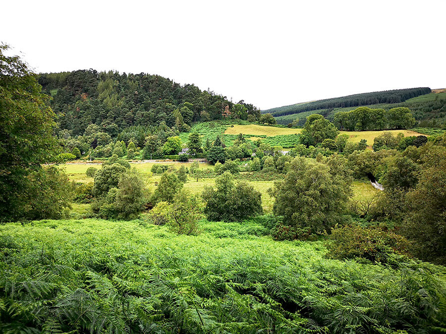 Ирландия - страна, которая не может оставить равнодушным. Она влюбляет в себя своей природой, легендами и скромным достоинством. Страна небогатая и гордая. А природа тут просто невероятная! Отсутствие солнца придает Ирландии своеобразное очарование. В такие моменты понимаешь, почему Ирландию любят называть изумрудной. В Дублине великолепно развита система автобусных экскурсий. Не обязательно брать машину, чтобы увидеть удаленные места, можно просто купить автобусный тур. Так мы и сделали. И оказались в двухстах километрах от Дублина, в графстве Уиклоу, где лежит прекрасная ледниковая долина Глендалох. О долине и о монастыре Святого Кевина я уже рассказывала тут. Сегодня мы отправимся на пешеходную прогулку от монастыря — это путь к озерам по лесу. Лес — сказочный. Такие деревья встречаются в обычной жизни нечасто. Посмотрите на эти переплетенные корни… Это — одно из озер Ощущение, что ты попал в сказку, не покидает. Может быть, именно поэтому нам встретилась эта прекрасная олен