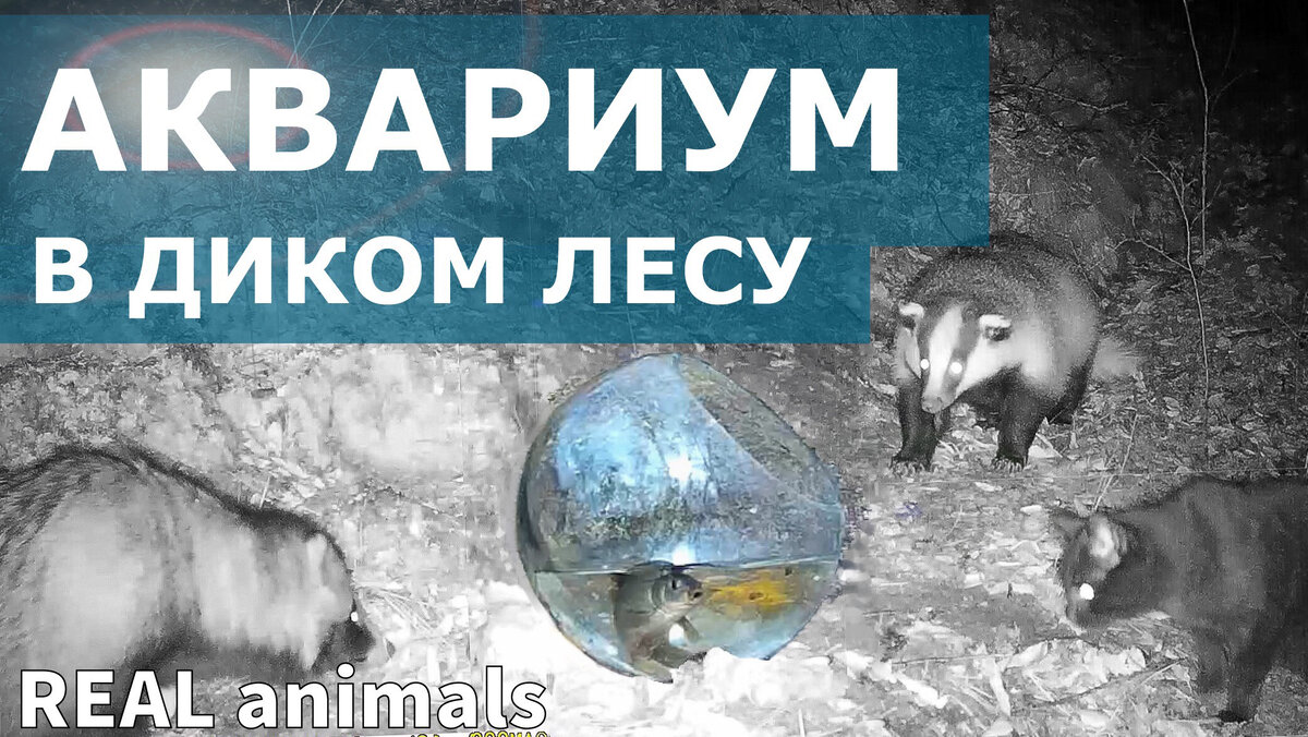 REAL animals Приветствую вас, друзья мои! Эти кадры с фотоловушки мы получили с дочерьми, установив аквариум в дикий дремучий лес. Судьба этого карпа, пойманного в пруду вместе с другими собратьями, разительно отличается от участи рыб, угодивших сразу на сковородку. О том, что стало с этим карпом, и об этой ночи в лесу я и намерен вам рассказать. Итак, первыми аквариум обнаружили барсуки. Сначала был зеленый молодой барсук, а сейчас подошел матерый старый барсук Лютый. Посмотрите, как забавно он поворачивает лапой аквариум и потом утоляет жажду. Что удивительно - эти барсуки видят рыбу, но не спешат ее съесть. Желание утолить жажду преобладает. "Если не можешь ловить рыбу, лови раков" - хочется сказать этому барсуку, испугавшемуся активности карпа. Спустя пару минут молодой барсук возвращается к аквариуму, в нем борются страх и любопытство, но побеждает страх. Ну а карп, насмотревшись на морды барсуков и потеряв половину воды в аквариуме, все же остается жив. Кот из дома - мыши в пляс