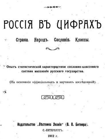 Мне попался скан одной занимательной книжки. "Россия в цифрах". 1912 год. И вот, захотел сравнить Россию начала XX и Россию XXI веков.