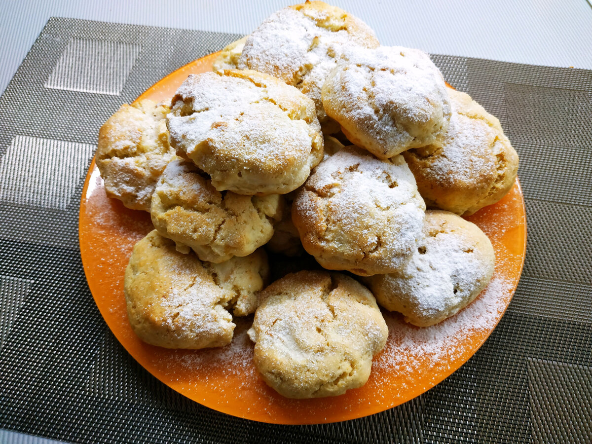 Это рецепт, наверное, облетел весь интернет. Если вы еще не готовили такое печенье, то я очень рекомендую его попробовать! Конечно, вкусы у всех разные, но на мой - это просто восхитительно! Раздала рецепт уже всем родным и не очень))) Готовить печенье быстро, оно меня уже не раз спасало, когда срочно нужна вкуснятина к чаю. А на результат пока еще никто не жаловался! Сохраняем рецепт на 13-15 штук: 2 яйца (С0) щепотка соли 100 г сахара 100 г сл.масла 1 ст.л. разрыхлителя 350 г муки 2 средних яблока корица по желанию ванилин Яйца перетираем с сахаром и щепоткой соли. Добавляем размягченное сливочное масло и хорошо перемешиваем. Я еще всыпаю немного ванилина и корицы. Так мне больше нравится, смотрите по своему вкусу. Всыпаем муку, перемешанную с разрыхлителем и замешиваем тесто. Яблоки очищаем и нарезаем кубиками. Добавляем в тесто и хорошо перемешиваем. Ложкой или руками, смоченными в воде формируем печенье и выкладываем на противень. Я застилаю его антипригарным ковриком. Печенье