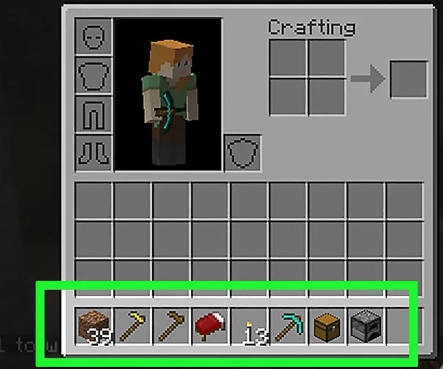 - Сундуки — крафтятся из восьми досок, которые получаются из двух деревянных блоков. В сундуках можно хранить руду, которую вы добудете во время поиска алмазов.