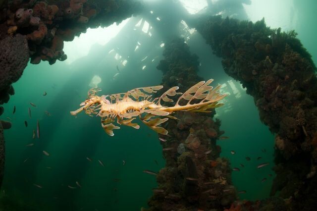 Будь то океан, море, река или озеро – водные глубины полны неизвестных и интересных вещей. Как бы активно водная среда не изучалась современными учеными, многие ее обитатели до сих пор остаются большой загадкой для человечества и поражают нас своим необычным внешним видом. Одним из самых необычных морских обитателей является Лиственный морской дракон или морской конёк-тряпичник. Первый вопрос, который возникнет у большинства читателей – что это такое? Лиственный морской дракон относится к семейству морских коньков. Его также называют тряпичником из-за его необычного тела, действительно напоминающего тряпку. Однако на дракона он тоже похож за счет своей изогнутости. Лиственный дракон совершенно безобидное животное – максимум, что он может сделать – спрятаться в водоросли и замаскироваться под них. Необычность одной из самых красивых рыб в мире также обусловлена ее питанием – «дракон» просто засасывает всех мелких рыб и креветок вокруг себя, поэтому часто к нему в рот попадают различные