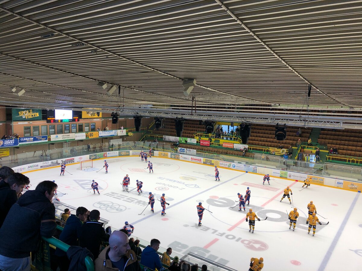 Во Всетине я первый раз сходила на хоккейный матч местной команды. Несмотря на то, что игра была не столь значимая, собралось 3000 человек, а ещ> поддержка местной команды была настолько крутой, что атмосферой игры прониклись все