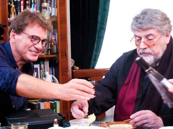 Мне, как журналисту, выбравшему котов не столько в качестве ТВ-реквизита, сколько как инструмент многоходовой коммуникации, любопытно было узнать, что Светлана Пермякова назвала своего питомца в честь… трёхкратного чемпиона мира Максима Чудова (увидев последнего на телеэкране). Вот не на ровном месте мой любимый персонаж «Интернов» – старшая медсестра Люба: ценю экспромт и ч/ю. *** Еще к вопросу о злоупотреблении спиртным в ТВ-эфире. Так случилось, что непосредственно перед записью «Семейного альбома» с Ширвиндтами, мне довелось отведать водки со старшим. Не скажу сколько, но не могу не отметить – тёплой как овации зрителей в «Театре сатиры». Теплой, потому что это был экспромт: блистательный Александр Теодорович Анатольевич как-то неожиданно предложил, а я не смог отказаться. Не смог, так как помнил одну из наших предыдущих ТВ-бесед. На стандартный вопрос «Чем нынешняя богема отличается от советской?», неподражаемый Ширвиндт со свойственной ему волшебной иронией заметил, что если рань