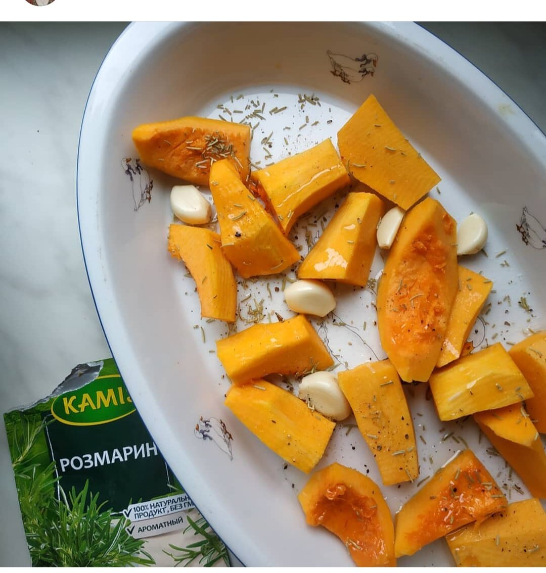 Аромат просто бомбический!!!! Попробуйте и вы не пожалеете, очень просто и необычайно вкусно! Тыкву порезать на кусочки, (можно очистить от кожуры или оставить её) сложить в глубокую миску, посолить, добавить розмарин или любимую приправу, добавить несколько целых зубочков чеснока, сдобрить оливковым или подсолнечным маслом и отправить в разогретую до 200С духовку на 20-25 мин. (в зависимости от толщины кусочков) Приятного аппетита!!!