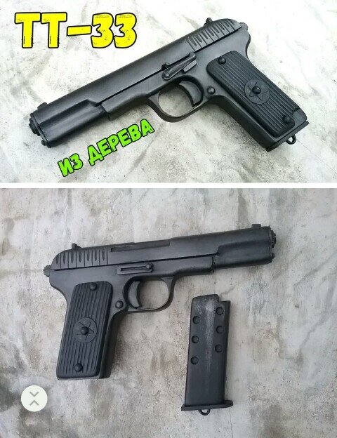 И снова здравствуйте!) Сегодня я вам немного расскажу и покажу как я сделал макет ТТ-33 из дерева. Надеюсь будет интересно, погнали! Для начала выпилим все детали. В качестве материала советую брать мдф. Конкретно я использовал мдф толщиной 3, 6 и 8мм в соответствии с шаблоном, который вы найдёте в конце поста Затем склеиваем все детали пва клеем. Маленькие составляющие можно склеить и цианокрилатным космофеном. В качестве ствола взял трубку из нержавейки диаметром 9мм Вот полностью собранный и обработанный пистолет. Остаётся его детализировать пвх пластиком, загрунтовать и покрасить И вот что получится Классно да?) Спасибо всем за внимание и до встречи. А вот шаблон