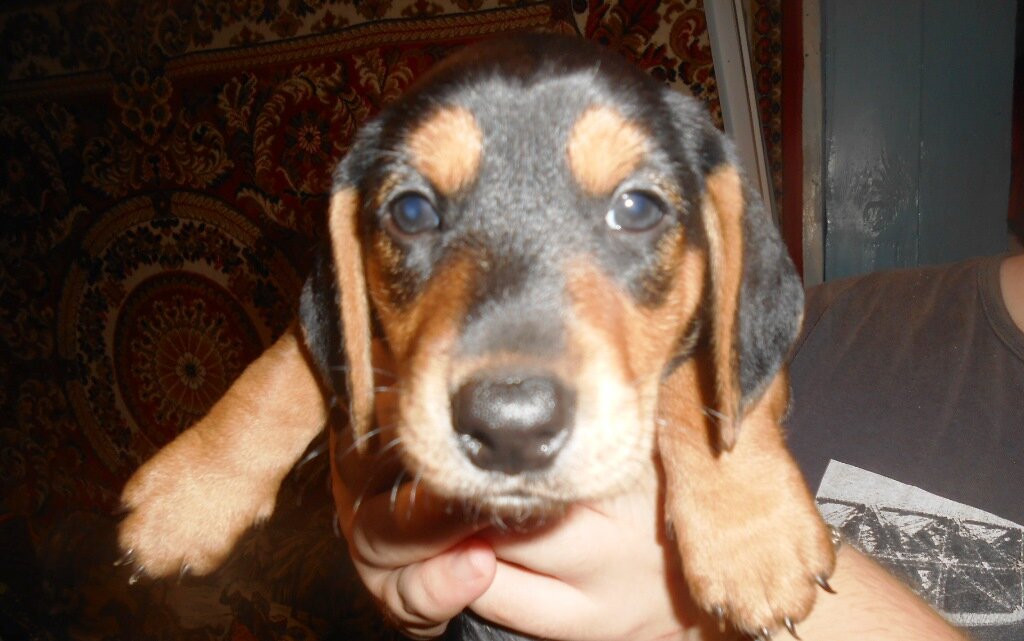Детенышу 1 месяц и 1 неделя. Мама - такса, папа - небольшая дворняга. Ну и что! Нам новый друг понравился. Мы назвали его Гошей. Выглядит малышок потешно. Пока щенок не знает, что его зовут Гошей. Он же - Гога. Он же - Жора... Человек, фу, пес, притомился в дороге и был расстроен, что расстался с мамой-таксой и братом. Гоша похож на мать больше, чем братишка. Тот - папин сынок. Когда проснулся решил поиграть. По-моему, нашим тапкам - хана. Особенно понравились Гоше помпончики. Почему мы решились стать хозяевами маленькой собаки? Неделю назад, перед прошлыми выходными, на улице , "возле работы", мы подобрали щенка русского тоя. Он потерялся. Малыш очень просился на руки, а нужно было выполнять задание. Пришлось "пристегнуть" тойчика к себе и так трудиться. Эта фотка теперь осталась на долгую память. В выходные нашлись хозяева. Оказалось, "потеряшку" зовут Риччи. Он гулял во дворе частного дома, нашел дырку в заборе и решил "пройтись по бродвею". Наш "родной новичок" - месячный "