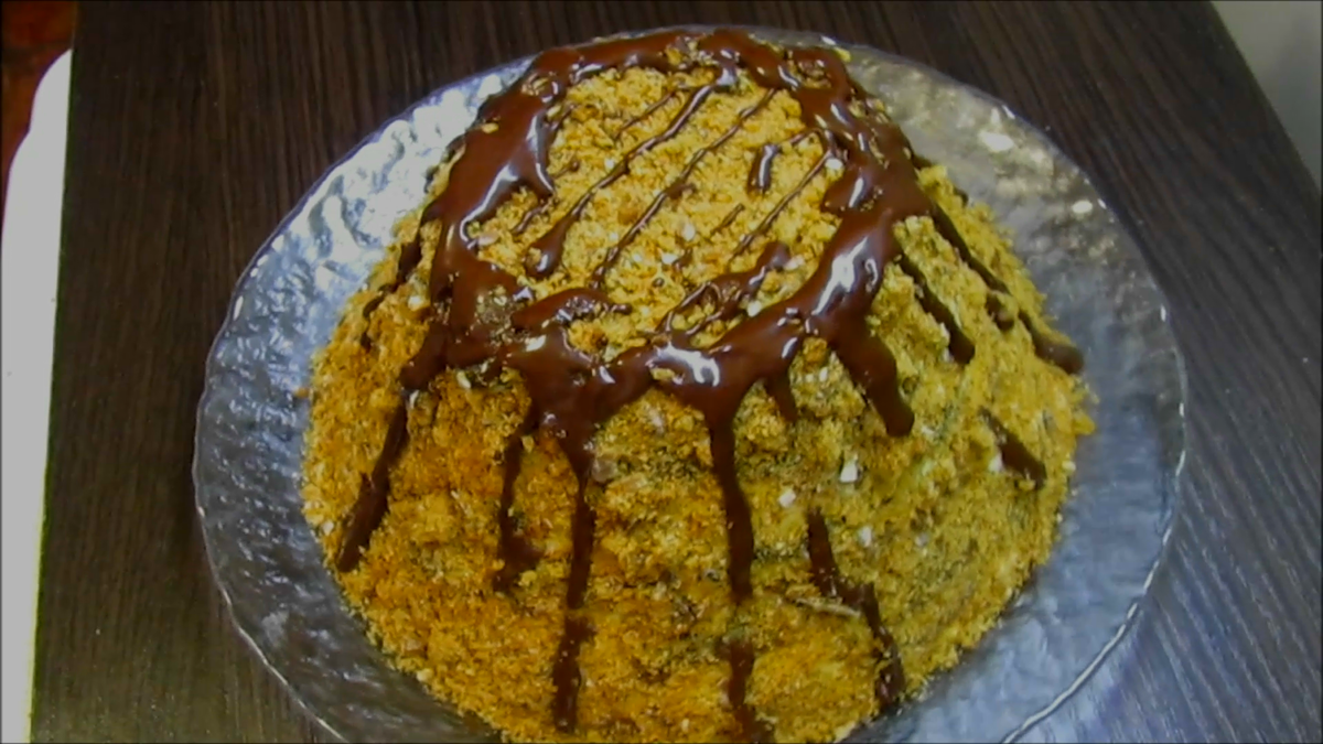Такое лакомство получится даже у ребенка! Мы с девчонками готовили его в студенческие годы, когда жили в общежитии. Ведь для его приготовления духовка не нужна! Собирается он буквально за 10-15 мин. Если приготовить на ночь, то утром вы будете наслаждаться нежнейшими тортом! Для его приготовления я покупаю в магазине свежие мягкие пряники, которые нужно нарезать на дольки Пряников понадобится 600г. Я брала темные(300г.) и светлые(300г.). Готовлю крем: взбиваю 500г. сметаны с сахарной пудрой (0,5ст.) и ванилином(1 пакетик) Глубокую тарелку застилаю пленкой и выкладываю слоями пряники, промазывая каждый кремом. Мажьте обильнее, вкусно будет! Накрываю тарелкой и оставляю пропитаться минимум на 2 часа, а лучше на ночь. По истечению времени, переворачиваю торт на плоское блюдо, пленку убираю. Тортик прекрасно держит форму и не расплывается, значит пряники отлично пропитались! Осталось пару манипуляций: обсыпаю тортик крошкой из пряников, поливаю растопленным шоколадом, либо шоколадной гл