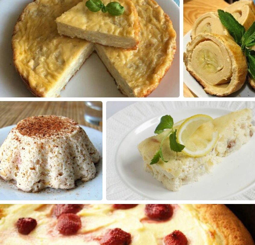 1. Творожно-сырный пирог на скорую руку! 🔸на 100грамм - 151.74 ккал🔸Б/Ж/У - 16.25/7.69/3.89🔸 Ингредиенты: 1/2 стакана обезжиренного молока 2 столовые ложки цельнозерновой муки 1 стакан обезжиренного творога 3 яйца 1,5 стакана тертого нежирного сыра (лучше брать 2х видов) черный перец, стевия свежие нарезанные помидоры (по желанию) рубленый свежий базилик или орегано (по желанию) Приготовление: 1. Разогрейте духовку до 180 градусов. 2. В средней миске смешайте вместе с помощью венчика молоко и муку до получения однородной массы. Вмешайте в тесто яйца и творог. Добавьте в смесь сыр, стевию и перец. 3. Вылейте смесь в ёмкость для выпечки, смазанную маслом. 4. Выпекать пирог необходимо от 45 до 50 минут или пока пирог не подрумянится и не поднимется, также готовность пирога можно проверить, вставив в центр пирога нож, он должен выходить чистым. Подавать пирог нужно сразу же. При желании его можно украсить помидорами и зеленью. 2. Творожный рулет с бананом: фитнес-десерт 🔸на 10