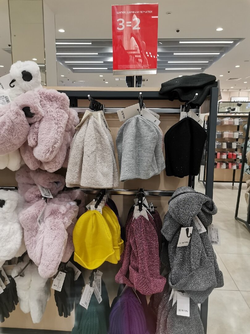 Шапки, шарфы и перчатки сейчас предлагается купить по принципу 3=2. Кто-то подумает - ну что за ерунда, для чего мне три шапки, например.
