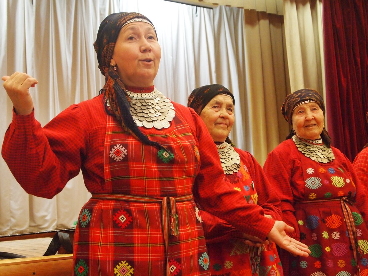 Бабушки запели и свое, удмуртское, и узнаваемое из Виктора Цоя, Бориса Гребенщикова, Булата Окуджавы. Почти все пели по-удмуртски, тексты переводит Туктарева. А Окуджаву, «Пока земля еще вертится…», мы все вместе спели на русском. Да так замечательно получилось, что многие утерли слезу. На вопрос о репертуаре бабушки улыбнулись: