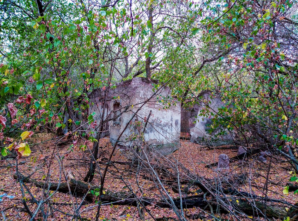 Дом с разрушенными колоннами в исчезнувшем поселке. Находки из прежней жизни его жителей