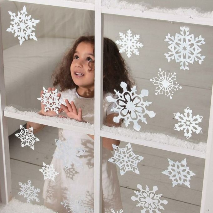 Наиболее простой способ – это, конечно, бумажные снежинки. Такой способ украшения окон знаком многим еще со школы. Можно делать их разного размера, бумага может быть разного цвета. Из снежинок можно на окне соорудить целую композицию, чтобы ее было видно даже с улицы! Наклеить их можно на двухсторонний или обычный скотч. Прекрасный способ порадовать не только себя, но и прохожих на улице, напомнив, что Новый год 2020 совсем уже близко! Наклейки Не у всех есть время на создание таких подделок. Поэтому в помощь вам специальные наклейки. Тут вы можете купить и снежинки, звездочки, елки, снеговиков. Тут все просто – наклеивайте понравившиеся наклейки прямо на окна! Как правило, такие наклейки не оставляют потом следов на окне. Новогодняя картина Любите рисовать? Тогд