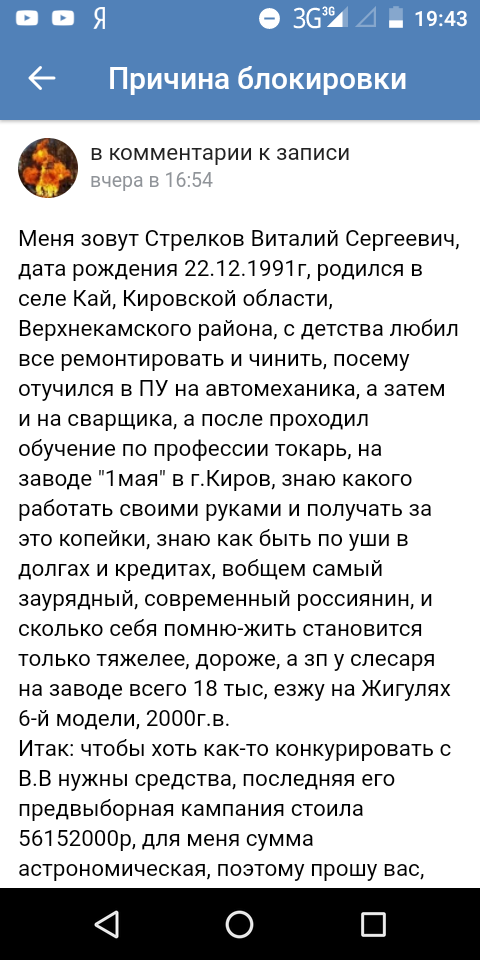 С момента регистрации в данной соцсети, ни разу ни на что не клянчил, не занимался мошенничеством и т.д, но буквально вчера запилил пост, о сборе средств на предвыборную кампанию в президенты России, на выборы в 2030г., изложил свой план, но мою страницу тут же заморозили, посыпался шквал хейтеров, большинство писали сообщения типа “да куда ты лезешь?” “Ты нихера не понимаешь в политике!” “Ты типичный попрошайка!” Извините но сейчас в думе сидят актеры, спортсмены и даже лица побывавшие в МЛС, да уж! куда мне до них, со своим техническим и ПУ, но во времена когда депутаты работали на заводах, жизнь для простого человека была куда лучше! Ладно, на сутки заморозили страницу, они прошли, дальше-больше, при попытке разморозить ВК пишет слишком много попыток запроса кода доступа, хотя я всего раз делал запрос и так раз 10, я конечно понимаю что все мы давно под колпаком, но неужели так называемые “кремлеботы” увидели столь серьезную угрозу? Пишите в комментариях что думаете по этому поводу,