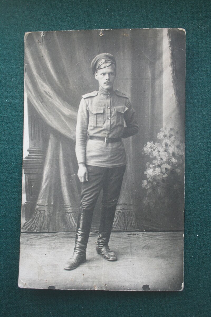 Первая фотография, несмотря на то, что она датируется ранее 1917 года, не представляет большой материальной ценности (стоимость 950,00 руб.) в первую очередь из-за того, что на ней изображен рядовой Вооруженных Сил Российской Империи без наград, а также на оборотной стороне не содержится конкретных данных солдата.
