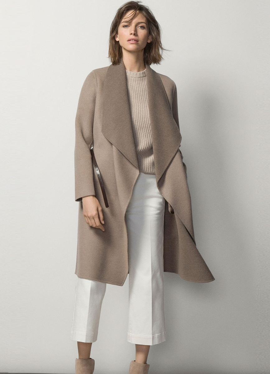 Пальто-халат стало настоящим хитом этого сезона, интересные модели в бежевых оттенках представил итальянский бренд MaxMara. Сейчас выбрать подходящее пальто-халат предлагают многие известные торговые марки. В чем же особенности таких моделей? Обзор модели Пальто-халат чаще всего не имеет пуговиц, оно застегивается на одну застежку или просто подвязывается поясом. Пальто-халат с поясом отлично подчеркивает достоинства женской фигуры, особенно, если у женщины есть талия. Создается женственный и романтичный образ. Пальто-халат шьется с отложным воротником, иногда его украшают мехом. Чтобы пальто смотрелось богато и стильно, стоит подбирать варианты из качественных тканей, например, кашемира или драпа, твида. Плюсы и минусы Плюсы таких моделей в том, что они сочетаются практически с любыми видами одежды. Верхняя одежда в таком стиле не сковывает движений. Неудобства могут быть связаны только с тем, что пальто не застегивается на всю длину, потому не сильно подходит для холодной и ветрен