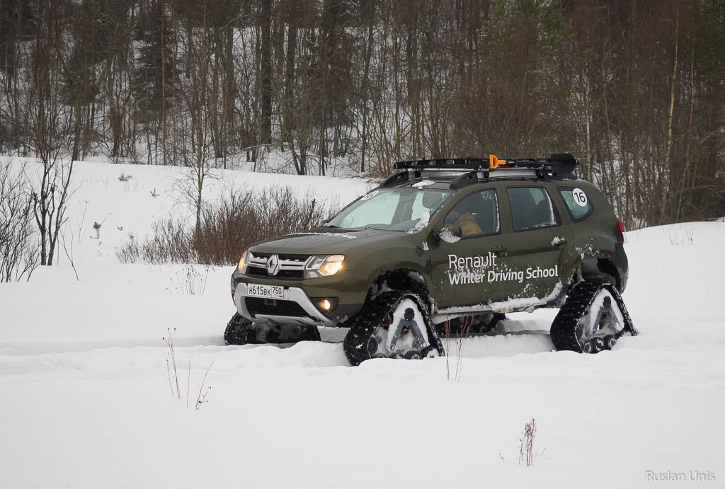 "Компания Renault выпускает модель Guster - автомобиль на базе Duster, где вместо колес установлены гусеницы" Представили себе такую новость? Как бы на это отреагировали бы? :) На самом деле никакого Рено Густер не будет. Но автомобиль на фотографии реальный и он ездит! Я сам побывал за рулем этого "Густера" и порулил по глубокому и рыхлому снегу. Ниже будут мои впечатления. Дело было на зимнем тест-драйве "Renault Winter Driving School". Каждый год компания Renault устраивает двухдневные обучающие и познавательные курсы для блогеров и журналистов на льду Ладожского озера. Крутое мероприятие, которое добавляет +много к скиллам вождения на снегу и по льду. Не представляете, сколько там нюансов! Например, для меня было открытием, что после прохождения поворота нужно разгоняться вместе с выравниванием руля, даже если машина не вписывается в поворот. Другими словами, руки и ноги в динамичном повороте должны действовать практически синхронно: плавно продавливаем педаль газа и так же плавно