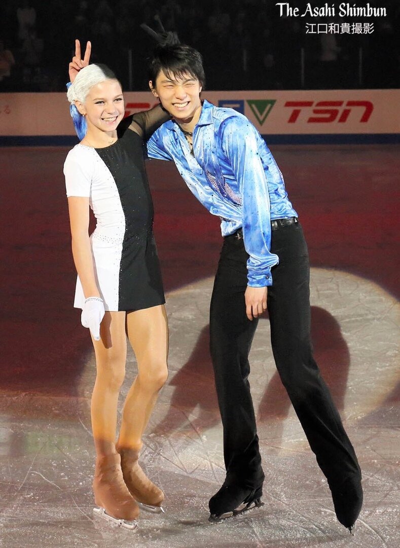 В воскресенье на этапе Гран-при Skate Canada состоялись показательные выступления. Много интересного было и на утренней репетиции. Победители этапа Юдзуру Ханю и Александра Трусова весело общались между собой и даже исполнили параллельный 4 тулуп. Японцы мгновенно показали видео прыжка на своем канале: Позже Юдзуру поделился мнением о Саше: Она фантастическая. Невероятная девочка, особенная фигуристка. Отметил Ханю и других российских квадисток: В России много невероятных фигуристок: Трусова, Щербакова, Валиева, Канышева. Они прыгают много четверных, не используя много энергии при этом. В этом плане они похожи на меня. У них есть, чему поучиться. С удовольствием буду наблюдать за ними. Еще одним приятным сюрпризом для Александры стало поздравление от лидера британской рок-группы Muse Мэттью Беллами. В произвольной программе Саша катается под песню, написанную этим музыкантом. «Поздравляю Александру Трусову с победой на Skate Canada с тремя четверными прыжками. И спасибо ей за то,