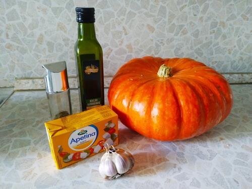 Отправляем лист в духовку (температура около 180 градусов, минут на 15-20). В это время чистим чеснок и мелко-мелко его шинкуем. Достаем тыкву из духовки. Посыпаем чесноком и снова отправляем в духовку ещё минут на 5-7. Проверяем