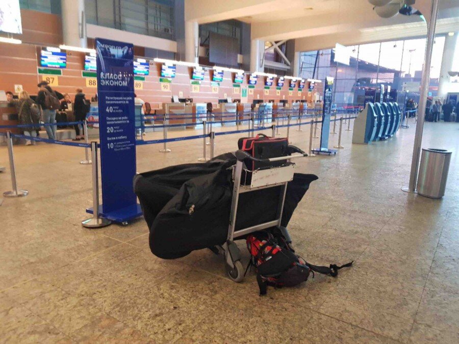 начало тут Прилетели в Мадрид, на улице накрапывает дождик. Пока скручивали и собирали велосипеды даже начали подмерзать. Все таки конец апреля чувствуется. Нам надо доехать до центра. Там есть церковь Parroquia Santiago y San Juan Bautista. Там можно получить паспорт паломника и начать наш Путь, какой же настоящий пилигрим отправится на Camino без паспорта. Дальше по плану путь на жд вокзал Atocha и от туда на точку старта. Перед вылетом мы с Сашей поменяли себе педали на велосипедах на контактные. Саша предупредил: к ним надо привыкать...хотя бы недели 2 покататься в домашней обстановке. На такие педали нога в ботинке пристегивается полностью, это сильно ускоряет езду и меньше затрачивается усилий. Времени у меня не было, велики были на ТО. А потому, привыкала к новым педалям и стилю езды на велосипеде по бразильской системе на месте. Ну как в этом Ералаше,только с велосипедами. А выглядело это так: не успевая отстегнуть ногу до того, как велосипед остановится, я эпично рухн