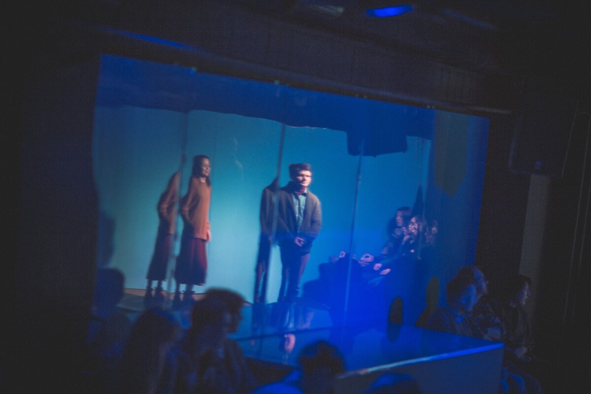 О спектакле «Созвездия» театра ARTиШОК Когда вы придете в ARTиШОК на спектакль «Созвездия», перед входом в зал вас попросят надеть бахилы. Стандартные, «больничные», голубые. В зале стены и декоративные подиумы обтянуты того же цвета полупрозрачным пластиком – идеально гладким, а оттого кажется, что в нем можно увязнуть. И если посмотреть на свои ноги, создается впечатление, что вы в это лазурное желе только что случайно вляпались. Такого чистого цвета в Алматы редко бывает небо: только в ясные дни и только рано утром, когда на город еще не успел спуститься смог. Такого цвета космос изобразил в спектакле художник Антон Болкунов. После премьеры Болкунов признается: вообще он не очень любит цвета и старается использовать их по минимуму. В «Созвездиях» цветов всего четыре: вот эта безупречная лазурь в декорациях и еще три – в костюмах персонажей. Витальные и трендовые: горчичный, винный и темная бирюза. В них одеты живые и теплые герои – на контрасте с нежилым и холодным космосом. «Созве