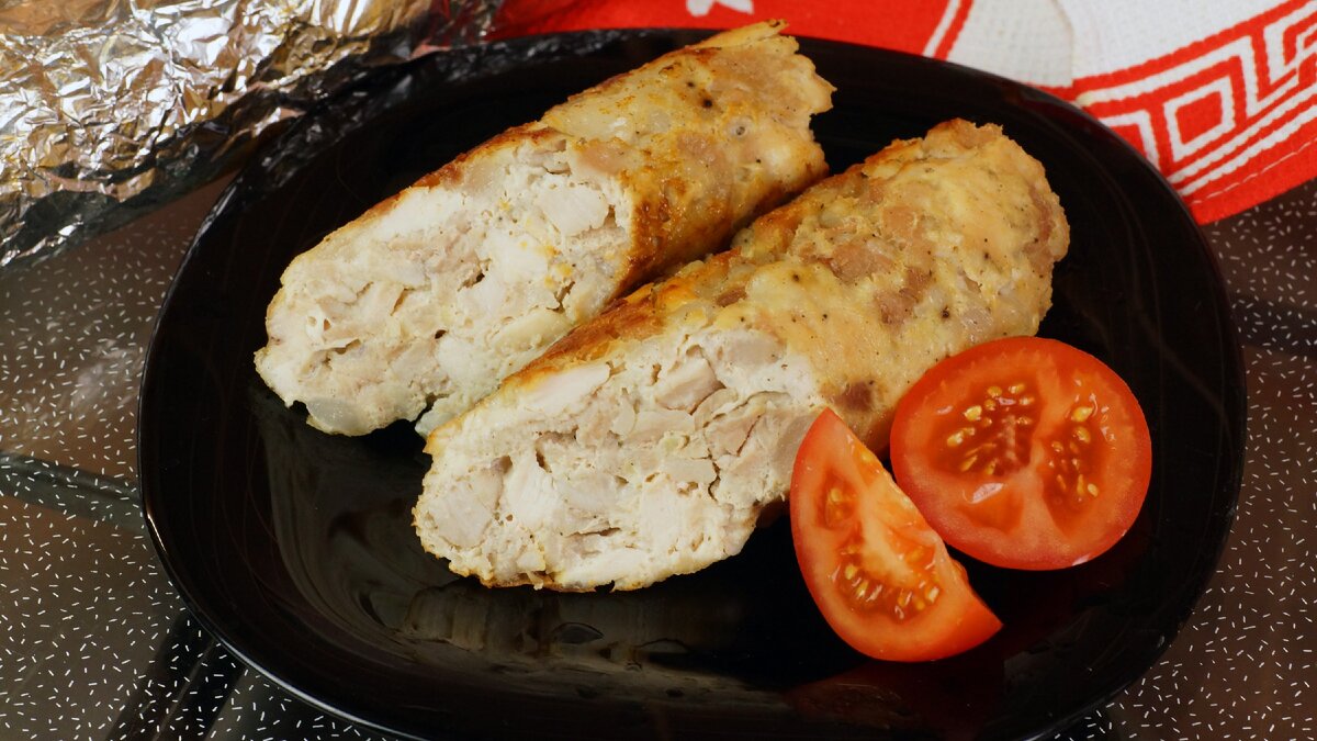 Вкусная домашняя колбаса без черевы в домашних условиях с использованием пищевой фольги. Рецепт простой и качественный. Попробуйте сами приготовить, уверен, Вам понравится! Приятного аппетита. ПРИГОТОВЛЕНИЕ: 1. На мелкие кусочки (кубики) режу ножом куриное филе, мякоть свинины и сало. 2. Хорошо перемешиваю всё мясо в посуде. 3. В ёмкость выливаю 4 яйца, давленый чеснок, соль, перец чёрный и приправы по вкусу. 4. Взбиваю венчиком до однородной массы. Добавляю крахмал и снова перемешаю. 5. Вливаю полученную массу в мясо и мешаю до равномерной массы. 6. Густую полученную смесь заворачиваю порциями в фольгу в виде колбасок. 7. Полученные колбаски выкладываю в лоток и отправляю в разогретую духовку на 60 минут при температуре 200 градусов. 8. Часть колбасок я дополнительно подрумяниваю в открытом виде ещё раз поместив в духовку на 10 минут при 210 градусах. ФОТО: ИНГРЕДИЕНТЫ: Мясо свинина - 1 кг; Куриное филе - 600-700 гр; Сало - 200 гр; Яйцо - 4 штуки; Чеснок - 6 зубчиков; Крахмал