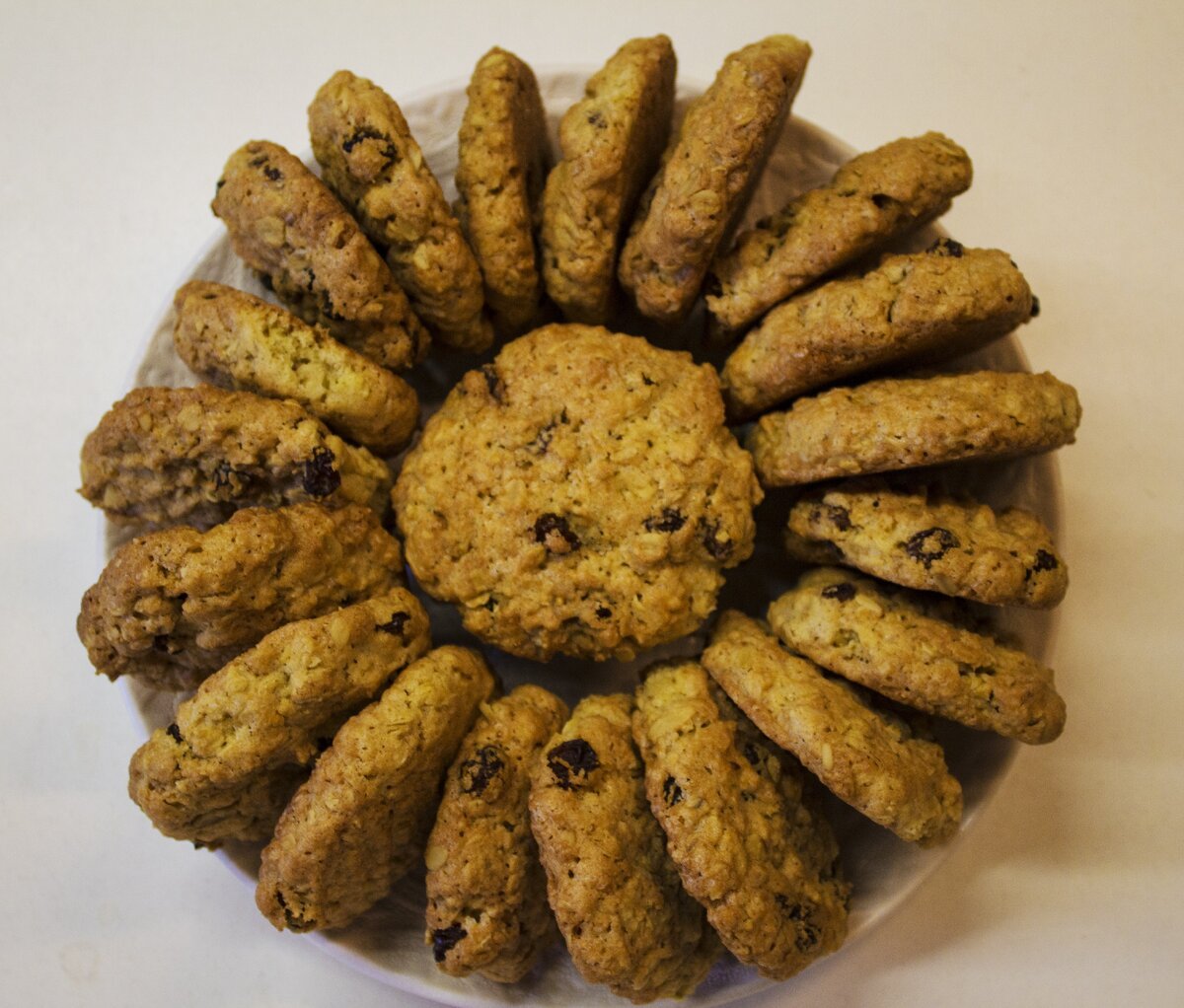 Сегодня я хочу поделится рецептом овсяного печенья. Это печенье готовится быстро, из указанного количества продуктов его получается много и оно очень вкусное. Нам понадобится: Геркулес - 3 стакана Яйца 2 штуки Сахар 1,5 стакана Масло – 300 грамм Мука – 2 стакана Мед – 1 столовая ложка Разрыхлитель – 1 чайная ложка Ванилин на кончике ножа Изюм, орехи – по желанию Овсяные хлопья можно перемолоть в кофемолке, но не в муку. Я это этап пропускаю, мне нравится с крупными хлопьями. Все смешать. Из теста скатать шарики размером с грецкий орех, разложить на противне на расстоянии, т.к. печенье увеличится в размере. Каждую печеньку немного приплюснуть. Тесто должно получится не жидким, на фотографии видно, что оно довольно плотное. отправить в духовку на 10-15 минут при 180 градусах. В итоге получается очень вкусное печенье. Приятного аппетита!
