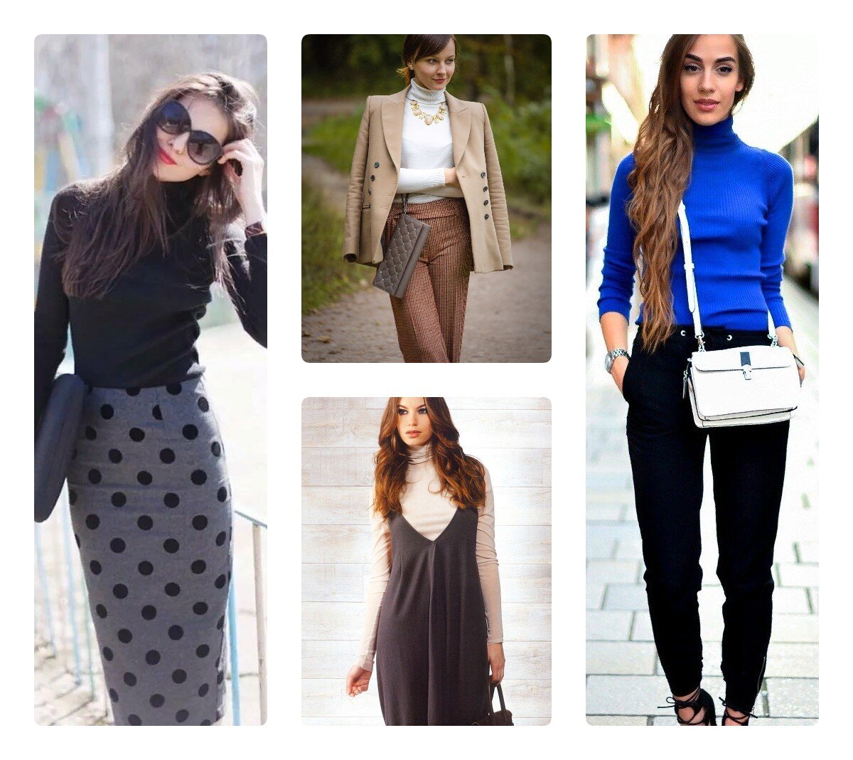 Признавайтесь, у кого в гардеробе нет водолазки? Эта базовая вещь, я уверена, есть у всех женщин! Это только на первый взгляд кажется, что водолазка - унылая базовая кофта. На самом деле с ней можно создавать множество образов, начиная от повседневных и заканчивая яркими праздничными. Водолазка и черная кожаная юбка Вы в курсе, что черная кожа - хит осенне-зимнего сезона? Комбинация базовой водолазки и юбки из кожи выглядит очень эффектно. Водолазка и сарафан Высокий воротник и отсутствие лишних деталей делает водолазку идеальной парой для открытого сарафана. У вас получится строгий офисный образ или стильный look для прогулок - все зависит от фасона и ваших предпочтений. Водолазка и пальто в клетку Еще одна актуальная вещь сезона - клетчатое пальто. Однотонная водолазка придется здесь как нельзя кстати (и все внимание устремится на клетку). Водолазка и джинсы И совсем не скучно! Универсальная базовая кофточка подходит к любой модели джинсов. Выбирая водолазку в пару к джинсам, вы точ