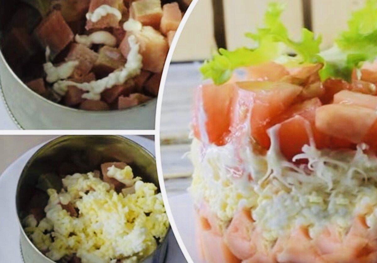 Начинаю цикл статей с рецептами салатов на новогодний стол 2020. Я подумала, что если вместить всё в одной статье, получится довольно длинно, поэтому решила выкладывать постепенно. Разумеется, ваш новогодний стол не обойдется без оливье и «шубы». Но, Крысе, хозяйке наступающего года будет очень приятно, если вы учтете и ее вкусы, поэтому берите на заметку эти простые и вкусные салаты. Новый и вкусный салат, который сметут со стола первым. Очень простой, но необыкновенно вкусный и лёгкий салат со слабосолёной красной рыбой не застоится на праздничном столе. Яркая и сочная закуска с первого взгляда приковывает к себе внимание гостей. Нам понадобится Приготовление Филе слабосолёной горбуши и помидоры порежьте на кубики. Кусок твёрдого сыра и яйца мелко натрите. Сервируйте с помощью большого металлического кольца или нескольких маленьких, предназначенных для порционной подачи. В качестве первого слоя распределите по дну тарелки измельчённую рыбу. Дополните майонезной сеточкой. По