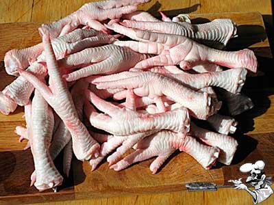 Повстречалась мне в лабазе весьма ухоженная курица с маникюром. Курица отправилась в бульон и еще кое- куда, а маникюр я, вспомнив времена дефицита решил применить. Берем килограмм лап. Промываем и варим- варим, с морковкой и луковицей часа 2, прежде чем закинуть куски куриной же мякоти. Для отдушки- перцы по вкусу и лавровый лист. Варим еще пол-часа. Не буду рассказывать как отделять и нарезать сваренное мясо. А также как украшать. Без всяких варенных яиц. Приятного! Не утомились читать? Ну, и хорошо.