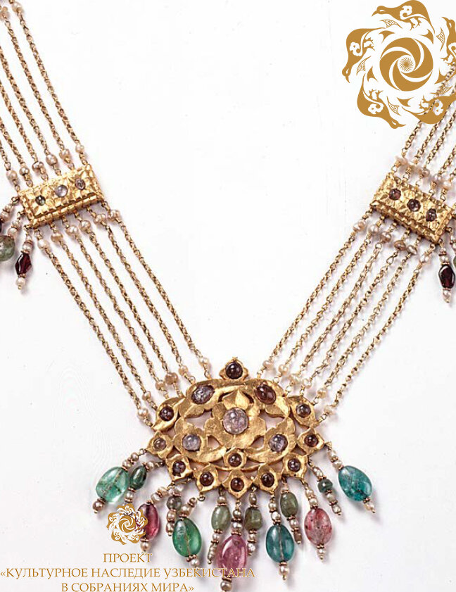Ювелирные украшения бухарских евреев в коллекциях РЭМ отличают не столько особые виды и формы – аналогичные украшения носили и узбечки, сколько большее использование золота, драгоценных и полу-драгоценных камней, тогда как у других народов Средней Азии пред-почтение традиционно отдавалось серебру.