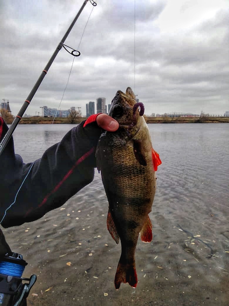Воскресенье 27.10.2019г. Порывистый ветер, свинцовое небо, мрачная и унылая погода, то и гляди вот-вот выпадет снег решаю все таки рискнуть и отправиться на рыбалку. На водоем я прибыл около восьми часов, по традиции отправился вниз по реке, уже к знакомым местам, откуда я и начинаю свою рыбалку возвращаясь вверх по реке поближе у дому. Пока шёл, видел на реке полный аншлаг, у одних спящих на принесённых шезлонгах звенят доночные колокольчики, другие при помощи каких то заумных конструкций ловят живца, одни ловят с лодок, другие бороздят берега реки со спиннингом, в общем народу много. В силу того что на реку я прибыл поздно, то место с которого я планировал начать было занято, ну да ладно, сместился чуть левее, оснастил спиннинг джигом с небольшой резиной и в результате часового полоскания приманки был и поймал небольшой окунь. Как то печально, сделал паузу, попил кофе с бутербродом, переоснастил спиннинг отводным поводком да и место с которого я хотел начать освободилось. В общем пер