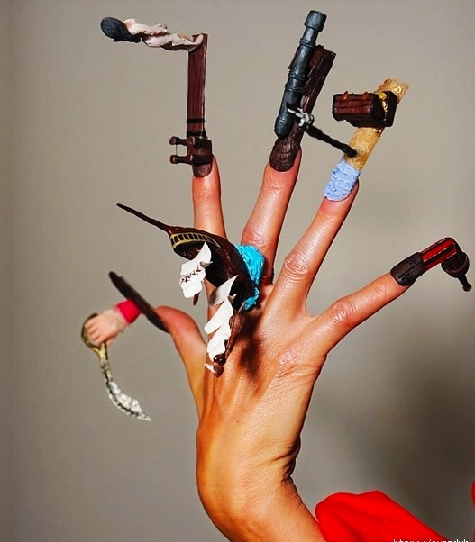 Сегодня хочу показать вам необычные дизайны маникюра. 1. Маникюр из живых цветов суккуленты. 2. Маникюр с помпонами. 3. Пузырчатый маникюр. 4. Маникюр с миньонами. 5. Маникюр с драгоценными камнями. 6. Маникюр с дешёвыми камнями. 7. Стиль лопата. 8. Маникюр 3-D. 9. Военный маникюр. 10. Маникюр зоопарк. 11. Маникюр качели. 12. Травяной маникюр. 13. Морской маникюр. Тут я не мог пропустить такое. 14. Педикюр для отчаянных.