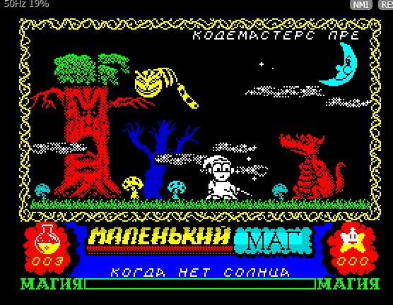 Посмотрел я на это дело, посмотрел и… полез ностальгировать на сайт-эмулятор ZX Spectrum, благо по названию проект легко нашёлся в местной библиотеке игр. Не то, чтобы я денег пожалел, хотя… ладно-ладно, жаба подушила, но в Steam игра доступна только на английском. Не сказать, будто текста в Slightly Magic много, но я отчётливо помню, что проходил игру на русском. К тому же, для пущей «аутентичности», было интересно вновь вернуться к старому управлению – клавиши для ходьбы Z и X, прыжок - K, Space – действие.