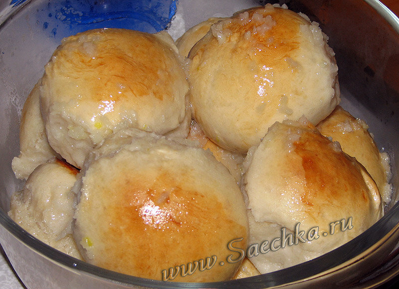 Пампушки готовились к борщу: тесто можно взять любое дрожжевое для пампушек, но главное, чтобы оно было не сладким. Ингредиенты: Дрожжевое несладкое тесто: Смазка булочек: Чесночная заправка для пампушек: Как приготовить: