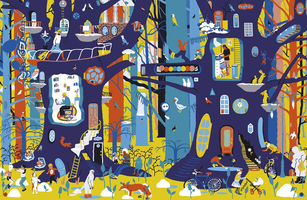 Художница Мария Краснова-Шабаева придумывает зины или скорее «книги художника» — выходящие в немногих, иногда даже единственных экземплярах, истории-путешествия в мир художника. «Дома и домики» — её первая книга исключительно для детей, но масштаб автора, конечно, очевиден в каждом рисунке. Книга рассказывает про пассажиров корабля «Пчела», пропавшего в начале ХХ века в Бермудском треугольнике. Люди остались на волшебных островах, построили дома в деревьях, выдули из стекла оранжереи, поселились в летучих домах и крошечных субмаринах. Получилась такая утопическая, очень артистичная фантазия о мире без войны, где люди занимаются только творческим обустройством пространства. Впрочем, благодаря заданиям внутри книги, такие волшебные острова можно построить себе и самому. Лиза Биргер «Дома и домики в Бермудском треугольнике» Автор и иллюстратор Мария Краснова-Шабаева