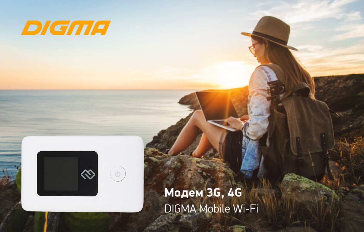 Пожалуй, одним из самых лучших решений для полноценного доступа в Интернет за чертой города — на пикнике или даче, например — на сегодняшний день является мобильный роутер Wi-Fi. Тот, для работы которому понадобится лишь SIM-карта, поддерживающая работу в 3G- и 4G-сетях. Именно о таком устройстве речь в этом пресс-релизе — роутере Mobile Wi-Fi от бренда DIGMA.