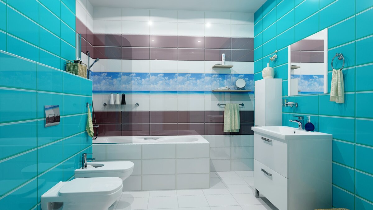 - применяя несколько насыщенных оттенков для стен, можно придать ванной комнате оригинальности, новизны. Главное, цвета гармонично сочетать. Яркие оттенки придают энергии, способствуют хорошему настроению;
