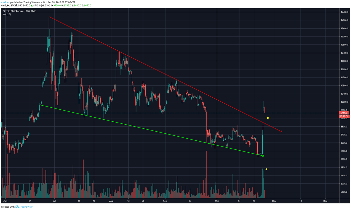 Более пристальный взгляд и дальнейший анализ графика CME показал, что во время стремительного роста цены BTC, которое началось 25 октября, на графике Bitcoin-фьючерсов CME появился очень большой незаполненный разрыв с $8800 до $9800.