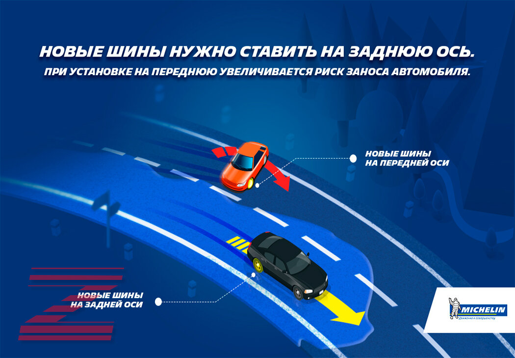 И тут подавляющее большинство и шиномонтажников, и просто обывателей утверждают, что более "живые" шины нужно ставить на ведущую ось автомобиля. Мотивируя это тем, что сцепление ведущей оси с дорогой намного более важно. Что является абсолютной глупостью!